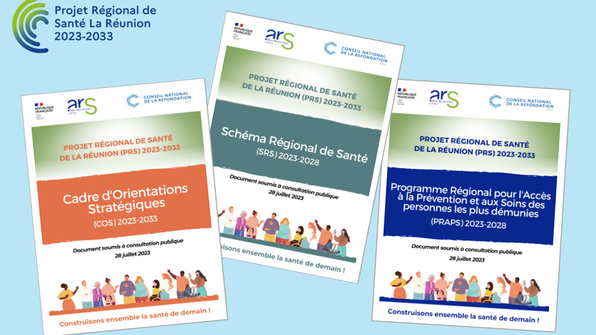 Retrouvez l’intégralité des 3 documents sur le site de l’ARS Réunion ICI ou copiez/collez le lien suivant dans votre navigateur : https://www.lareunion.ars.sante.fr/consultation-du-prs-2023-2033