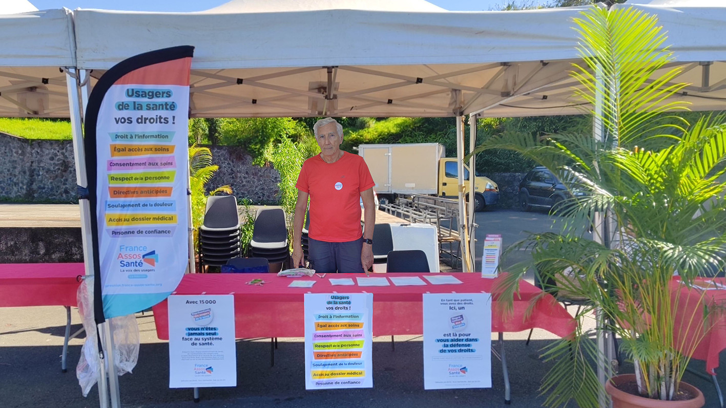 Cette action de lutte contre la précarité mobilise les acteurs de l’accompagnement (social, insertion, logement, loisirs…) et de l’accès aux soins avec la présence de la CGSS de La Réunion. Michel, représentant des usagers pour France Alzheimer a tenu un stand France Assos Santé La Réunion de 9h à 12h dans le but de faire connaître les droits en santé aux participants du forum.