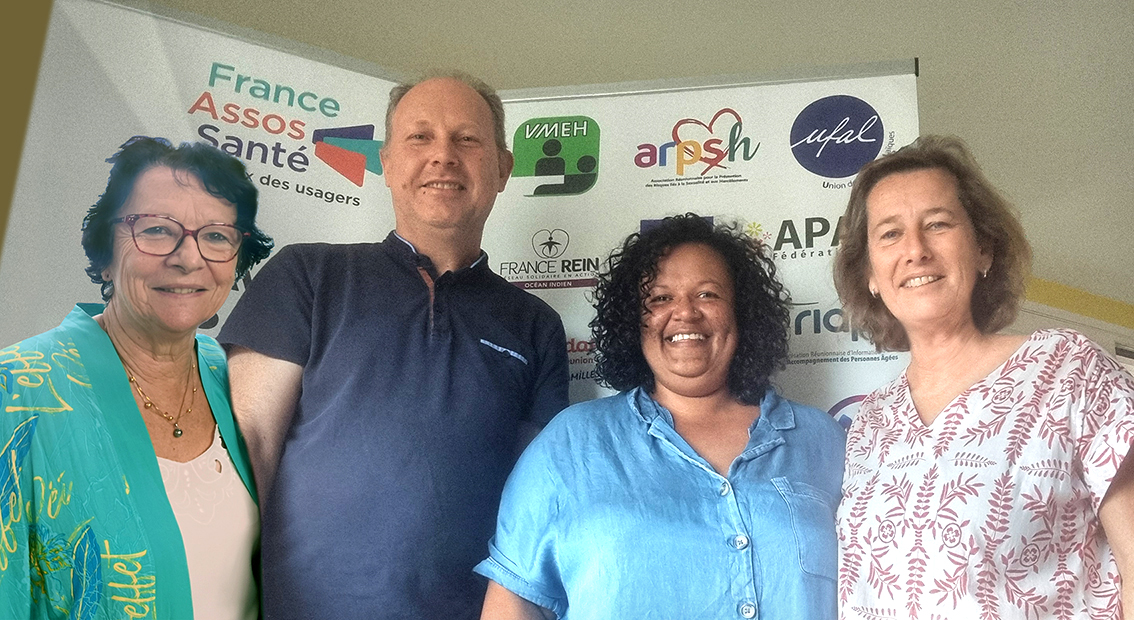 Sur la photo, de gauche à droite : la présidente de FAS La Réunion, le président d’honneur de l’AFH nationale, la présidente de l’AFH Réunion et la coordinatrice régionale de FAS Réunion.