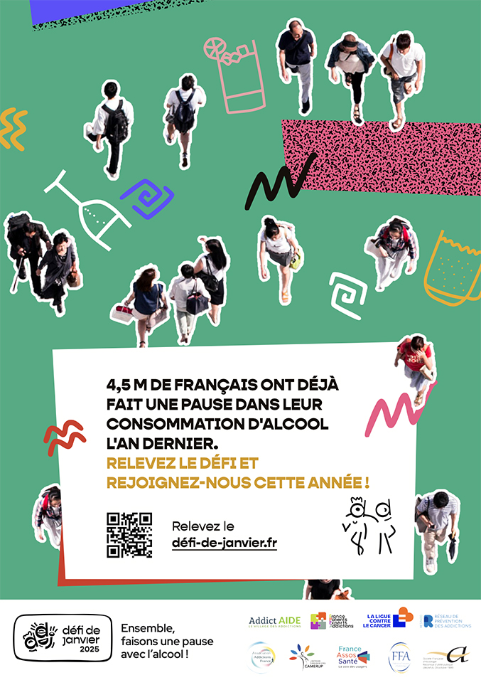 Aux côtés d’autres associations (Addictions France, Addict’Aide, la Société française d’alcoologie, La Ligue contre le Cancer…), France Assos Santé porte depuis son lancement cette mobilisation collective de prévention sur l’alcool, deuxième facteur de mortalité évitable (après le tabac). Cette année marque cependant une nouveauté de taille puisque le collectif d’associations organisatrices auquel nous participons a souhaité lancer l’identité française de cette campagne. En effet, nous ne possédions aucun droit sur la campagne du Dry january, ce qui ne nous permettait pas de l’adapter au public français.