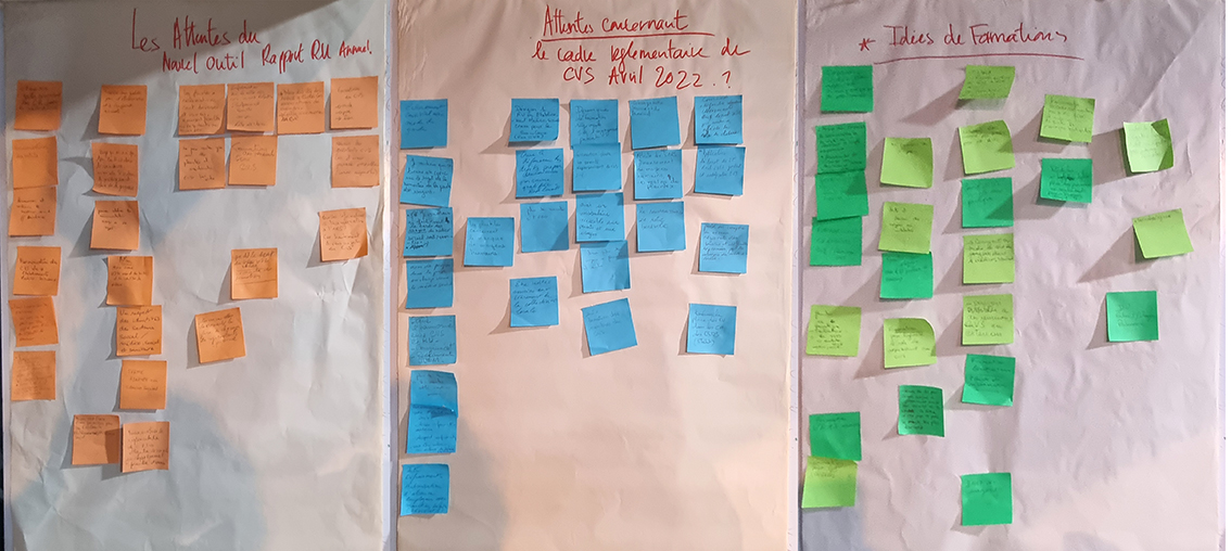 Les participants ont été invités à rester dans l’auditorium et l’animation a été assurée par Guylaine Caillière et Brigitte Chane-Hime. L’atelier a permis d’échanger sur les attentes concernant le nouvel outil numérique pour renseigner le rapport annuel des commissions des usagers à adapter au médico-social. Les échanges ont également porté sur le cadre réglementaire des CVS et la formation des membres.