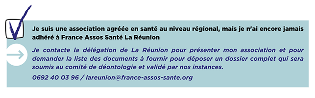 Alors rejoignez France Assos Santé La Réunion, un lieu d’échanges, de partage d’idées, de mise en œuvre d’actions communes et de plaidoyers. »