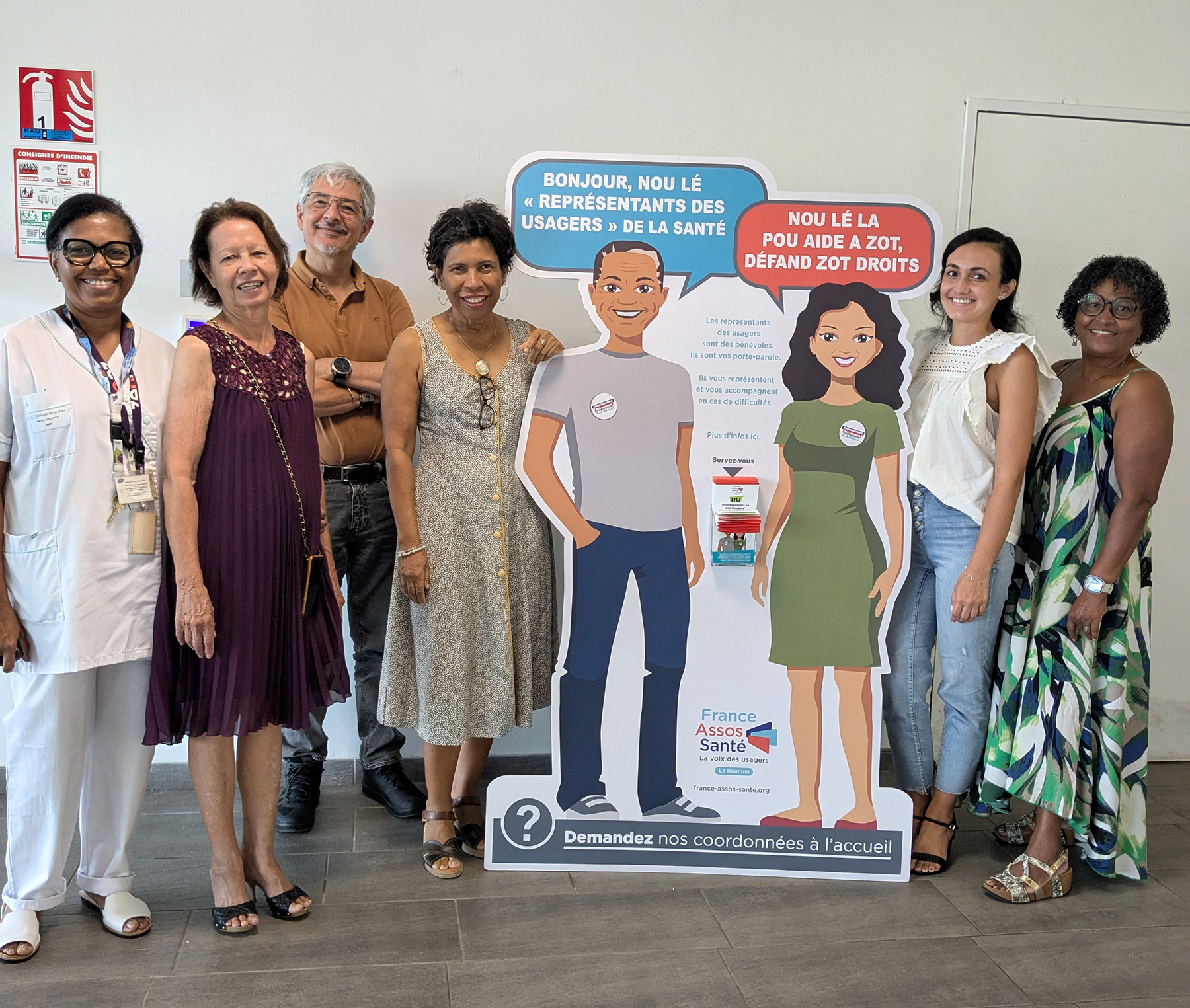 France Assos Santé La Réunion a créé en 2023 des silhouettes RU en PVC à taille humaine dans le but de donner de la visibilité aux représentants des usagers (RU) présents dans tous les établissements de santé de l’île. Tous les établissements seront dotés d’un exemplaire sur demande. Cette action de communication participe à faire connaître les RU dans l’établissement et auprès des usagers et s’inscrit dans le plan stratégique de France Assos Santé La Réunion 2023-2026.