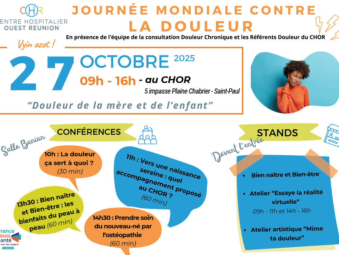 La Journée Mondiale de Lutte contre la Douleur (JMD) sera mise en place au CHOR le lundi 27 octobre 2025, de 9h à 16h.…