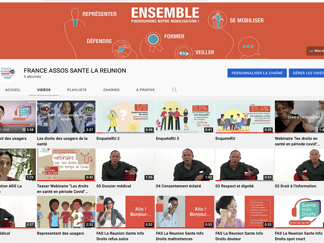 YouTube France Assos Santé La Réunion : 18 vidéos accessibles
