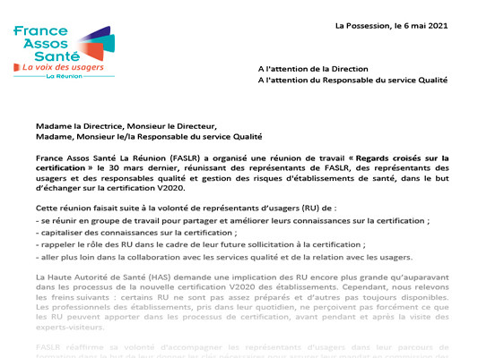 Prochain webinaire « Les jeudis de France Assos Santé » le 15 avril, à 20h (Réunion), dont le thème sera : "De la…