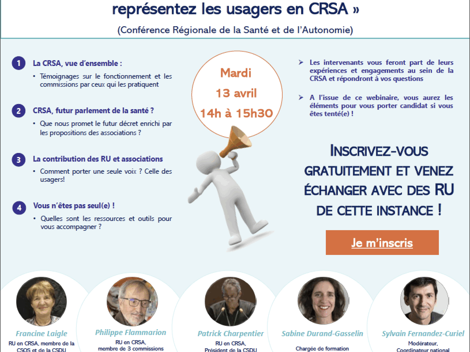 Webin’RU "RU, agissez pour la santé dans votre région ! Représentez les usagers en CRSA" le 13 avril prochain à 16h.…