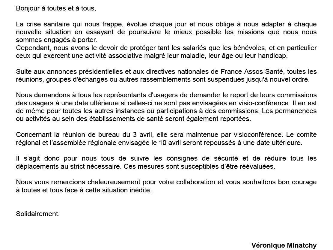 Voici la note envoyée à tous les membres de France Assos Santé Océan Indien le 17 mars 2020. Note FAS OI Coronavirus…